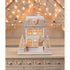 This beautiful townhouse has metallic accents and is covered in glitter to add some sparkle to your mantle or holiday display. It is hand crafted of pressed paper with velum inserts in the windows and door so you can light it up with a C7 light cord. Light cord is sold separately.