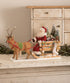 This is a spectacular collectable piece that will surely become a family heirloom.This beautifully detailed Santa in sleigh is based on vintage, German Santas. The reindeer is covered in flocking with fabric trims and accents for an elegant, finished touch. The sleigh is painted to look as though it has weathered many winter storms with sparkly snow collected on the rails and slats. The sleigh is overflowing with beautifully crafted toys and shades of green bottle brush trees. The nobel Santa sits at the front of the sleigh with reigns in hand and wears a long fabric coat to keep him warm on his long journey. His wire arms allow you to bend them to a position of your choosing. This collectors' piece will be cherished and passed down through generations.Materials: Hand-painted resin, MDF, bottle brush, faux leather, fabric, beads, flocking, and glitter.Dimensions: 22" x 6.5" x 13"